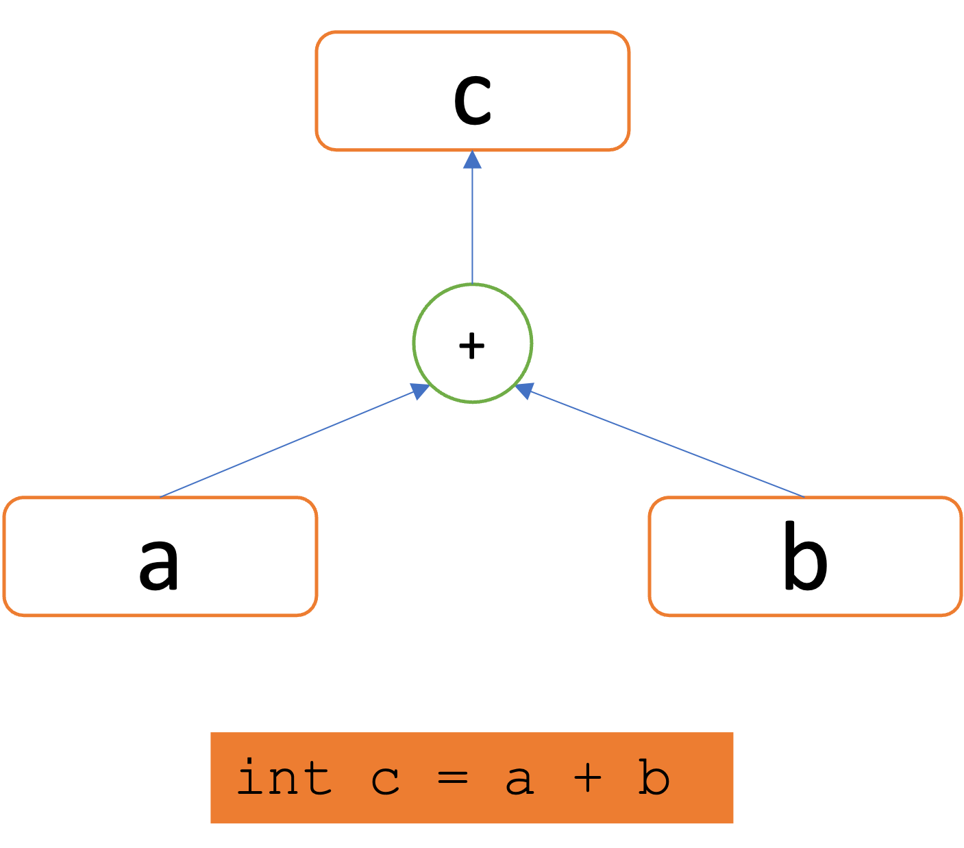 Recall the example int c = a+b introduced in the previous section. Its relevant SEG is duplicated here for ease of exposition.